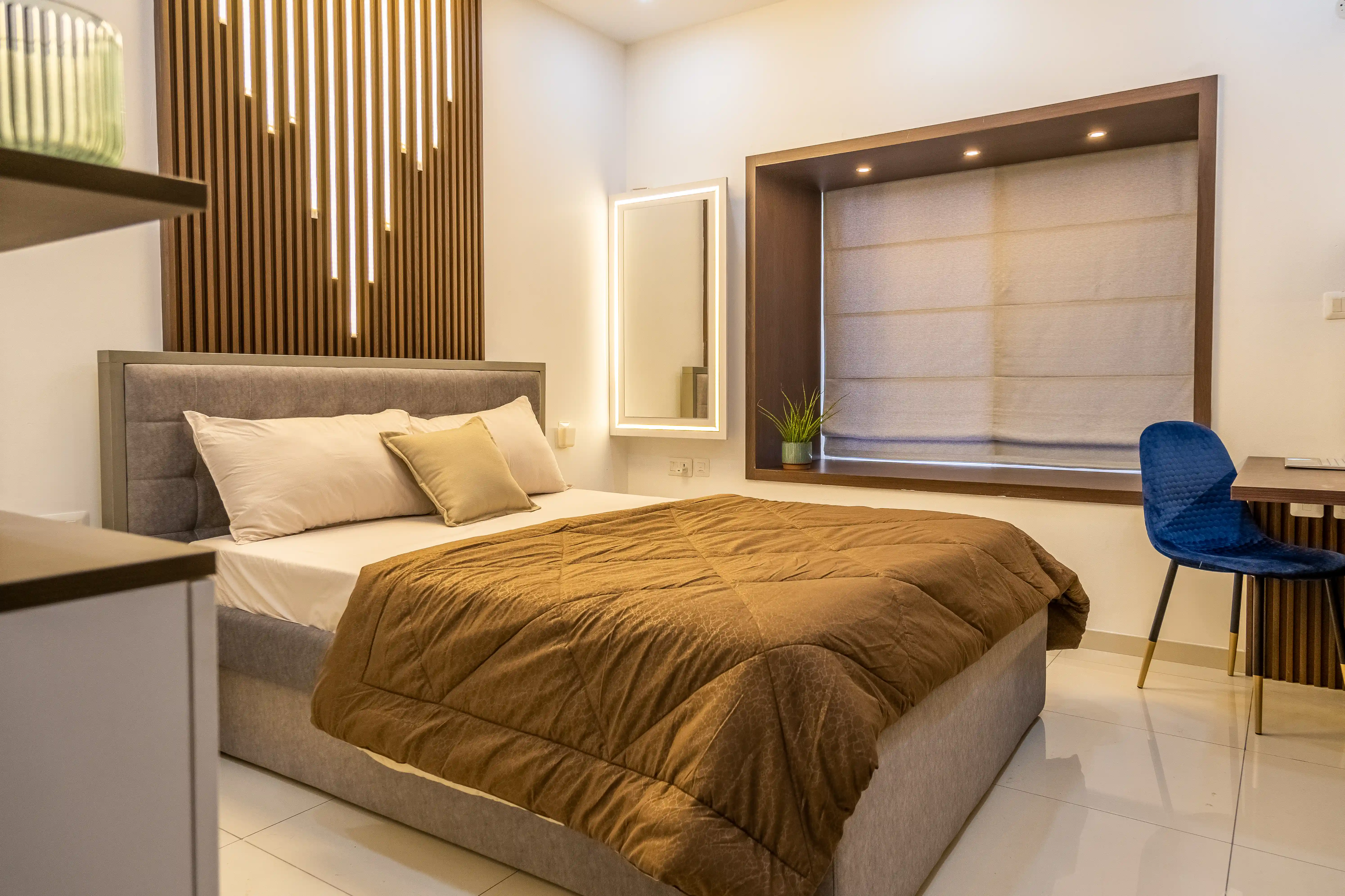 Transforming a 1258 sq. ft. apartment into a dream home, Dzyn Interio showcases impeccable craftsmanship and attention to detail in this full-home interior project. Designed with premium materials like marine plywood and laminates, the space offers durability and aesthetics in perfect harmony. Highlights include a sleek 70 sq. ft. glass kitchen, a stylish 150 cm breakfast counter, and kitchen accessories worth ₹68,000, delivering both functionality and elegance. With a total budget of ₹14.5 lakh, this project reflects our commitment to creating personalized, high-quality interiors that elevate everyday living.