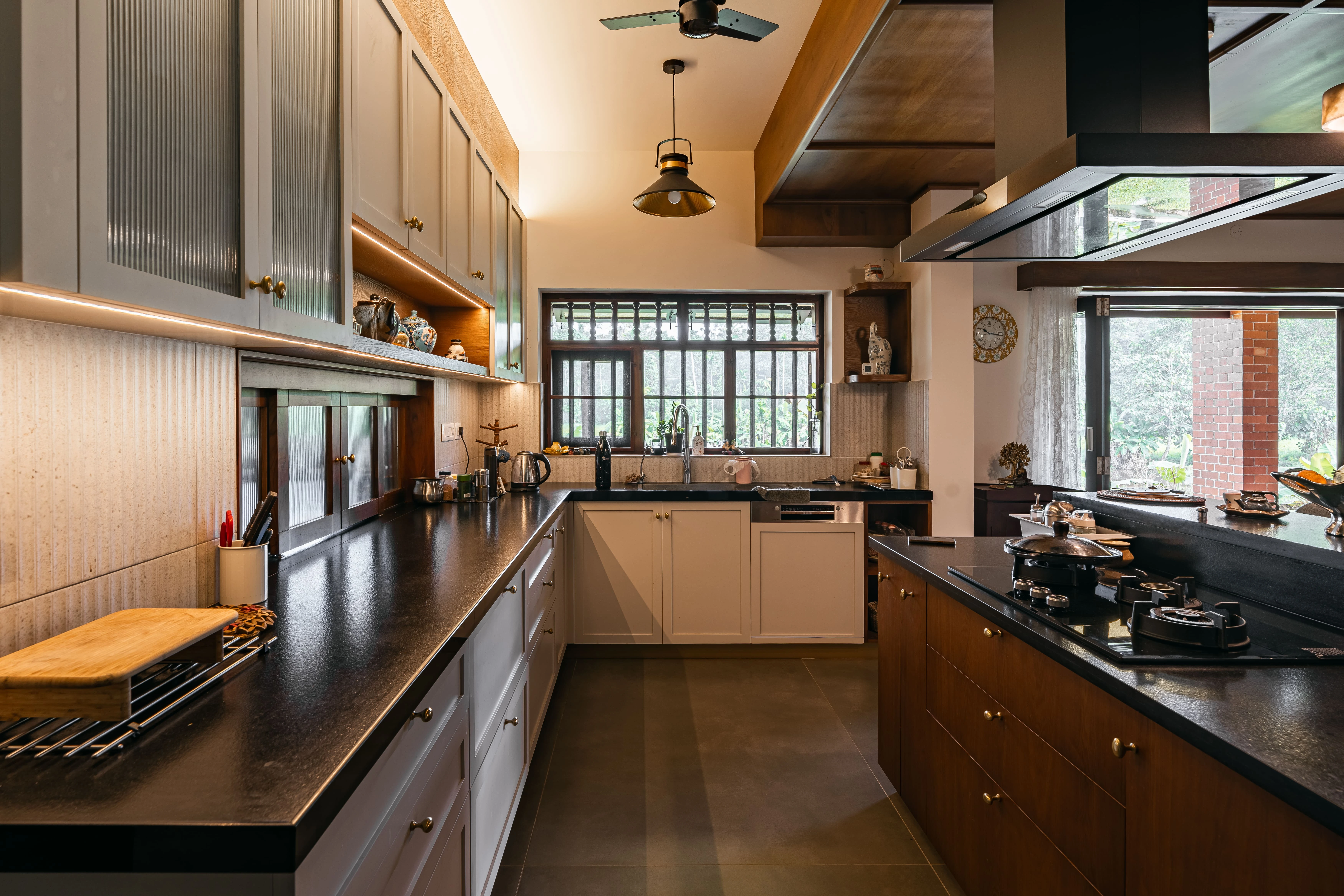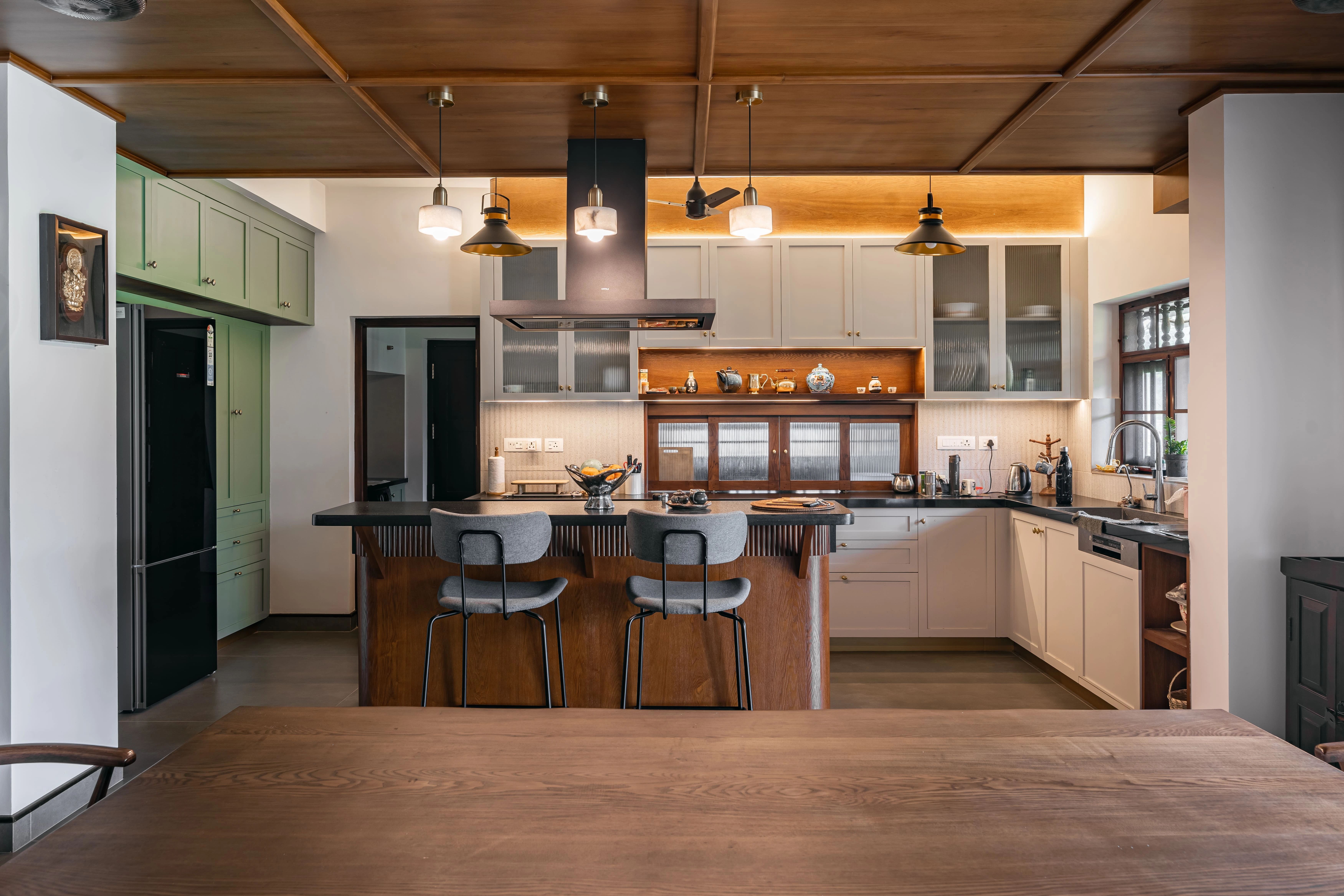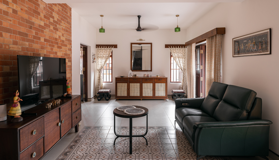 Spanning 3500 sqft, Sekhar’s Villa is a masterpiece of luxury and elegance designed and executed by Dzyn Interio. The interiors reflect a seamless blend of sophistication and comfort, crafted with premium marine plywoodand high-quality laminates to ensure durability and aesthetic appeal. The kitchen stands out with its modern and stylish design, offering both functionality and elegance. Every space within the villa is meticulously curated to provide a cozy yetopulent living experience, with a focus on ergonomic comfort and visual harmony. From lavish living areas to thoughtfully designed bedrooms, the interiors exude class and warmth, making it a perfect retreat for refined living.